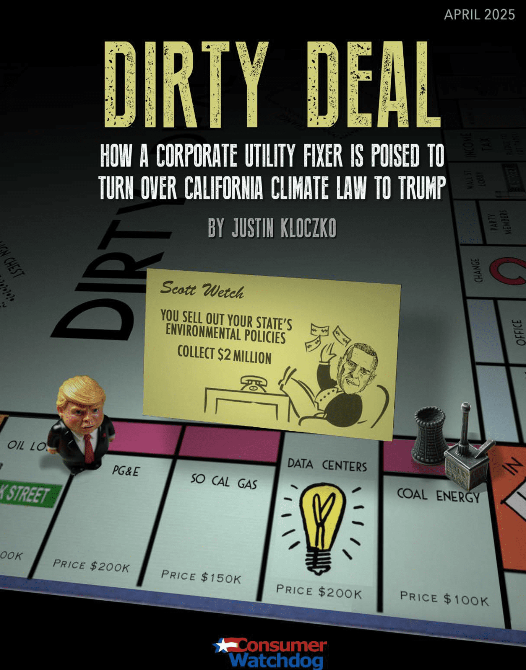 Los Angeles, CA—A new investigative report by Consumer Watchdog explains the sudden reversal by electric worker and corporate lobbyist Scott Wetch to support a controversial energy bill SB 540 (Becker), known as “Pathways,” which cedes control over California environmental laws to Trump.