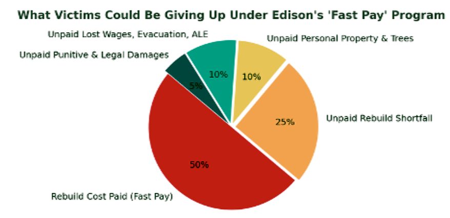 Edison’s Fast Pay program risks turning a public safety fund into a utility liability shield. Victims deserve full compensation, not shortcuts that leave them shortchanged. Consumers shouldn’t have to trade fairness for speed.