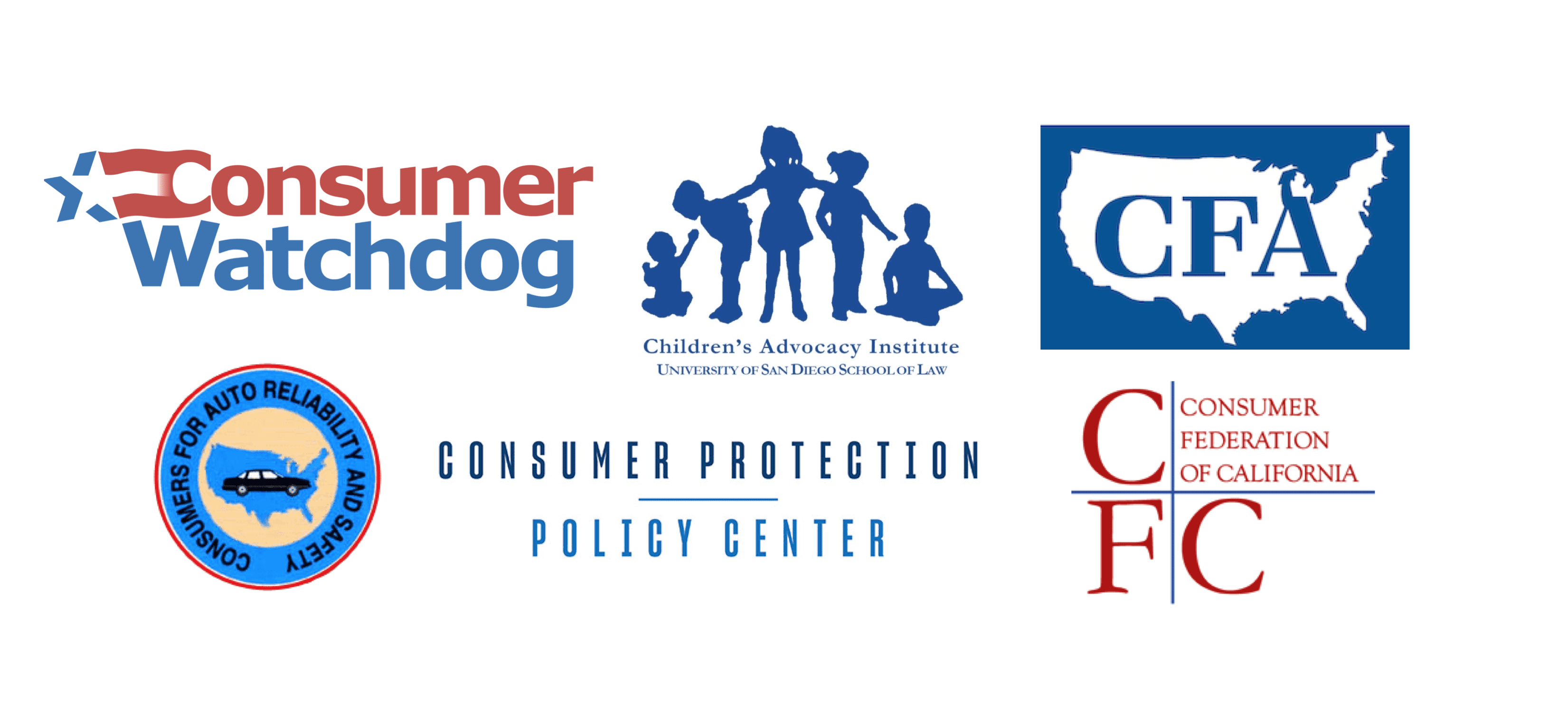 Consumer organizations signing the letter include: Consumer Watchdog, Consumer Federation of California, Consumers for Auto Reliability and Safety, Consumer Federation of America, Consumer Protection Policy Center, and The Children’s Advocacy Institute.