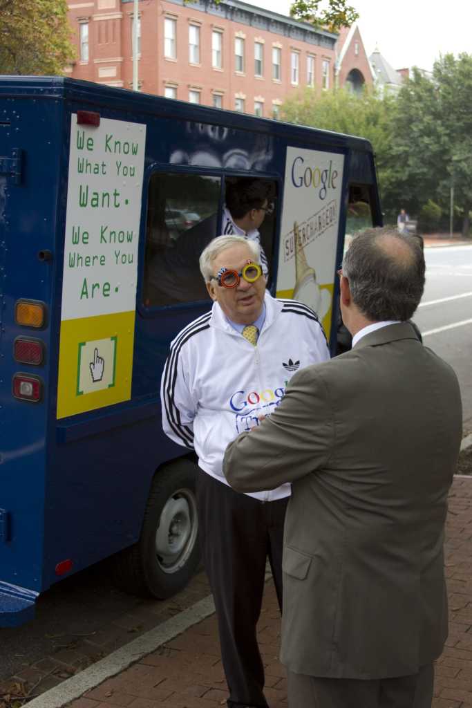 Here’s a round-up of pictures and video of the events around Washington DC covering our “Google Track Team”, in town to draw attention to Google’s creepy tracking and anti-trust behavior during Google CEO Eric Schmidt’s testimony before Congress: Share This Article Facebook Twitter LinkedIn Email Print
