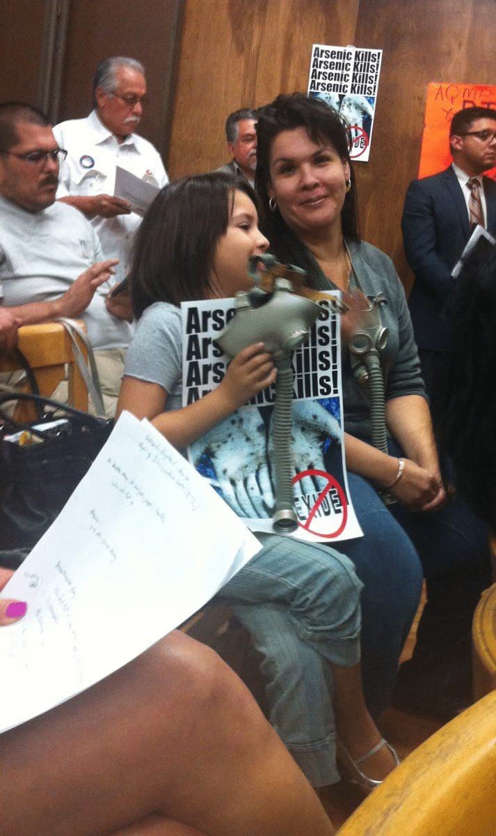 What they got was a verbal flogging about serial toxic polluter Exide Technologies from lawmakers and from residents that packed the hall. “Are our children worth as much as any other child?” asked Senator De Leon of regulators. Residents, some in gas masks and holding posters that said Arsenic Kills, repeatedly shouted “Shut them down” as regulators talked about the deal they had just cut with Exide to leave the plant open.